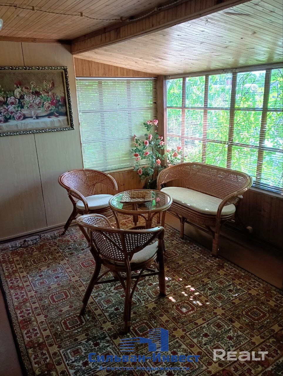 - Остекленная веранда, просторная кухня, жилая комната с камином и небольшая спальня.
