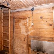 Дом: на первом этаже мастерская, погреб, и летняя кухня. У мастерской и погреба свой вход с металлической дверью. газовый баллон стоит в погребе и в летнюю кухню на первом этаже проведена трубка для подключения газовой плитки. Также в летнюю кухню проведена вода, стоит проточный нагреватель. окна на первом этаже только у летней кухни, на них есть решетки.
