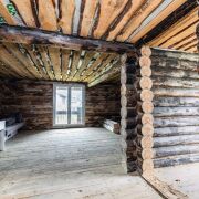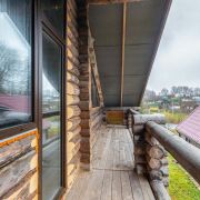 -Дом построен из массива кругляка зимней рубки. Полностью прошёл усадку по технологии. Диаметр бревна 26–28 см даёт естественную теплоёмкость: зимой дом медленно остывает, летом - не перегревается. Древесина прошла полную обработку антисептиком и огнебиозащитой. Бревно в отличном состоянии.