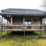 -Площадь дома - 100 кв.м (без учета террас). Планировочно он выдержан не как сезонное жильё, а как дом для круглогодичного проживания: две большие комнаты, кухня-гостиная, ванная, санузел, кладовая с отдельным входом и две функциональные террасы на первом уровне. Одну можно использовать практический как готовую зону барбекю.