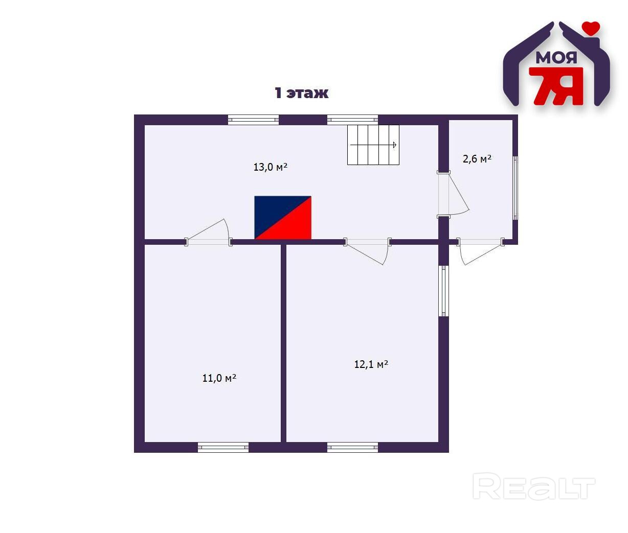 -1 уровень: тамбур, прихожая с лестницей на 2й этаж, кухня-столовая, 2 комнаты.