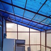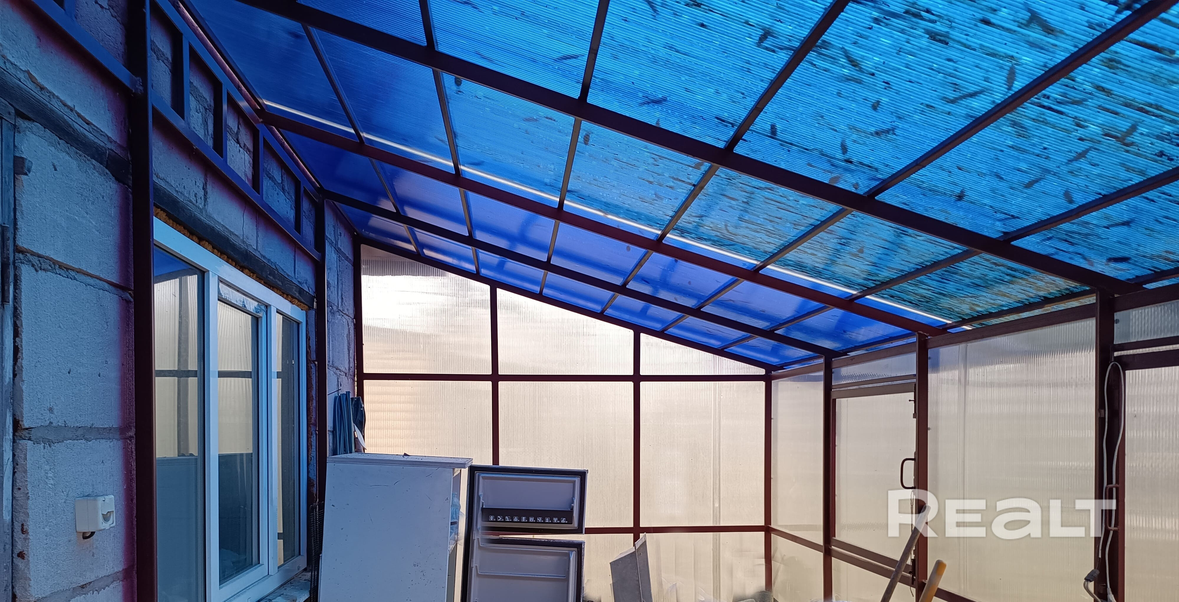 Веранда каркас металлический, стены поликарбонат. Установлен умывальник.