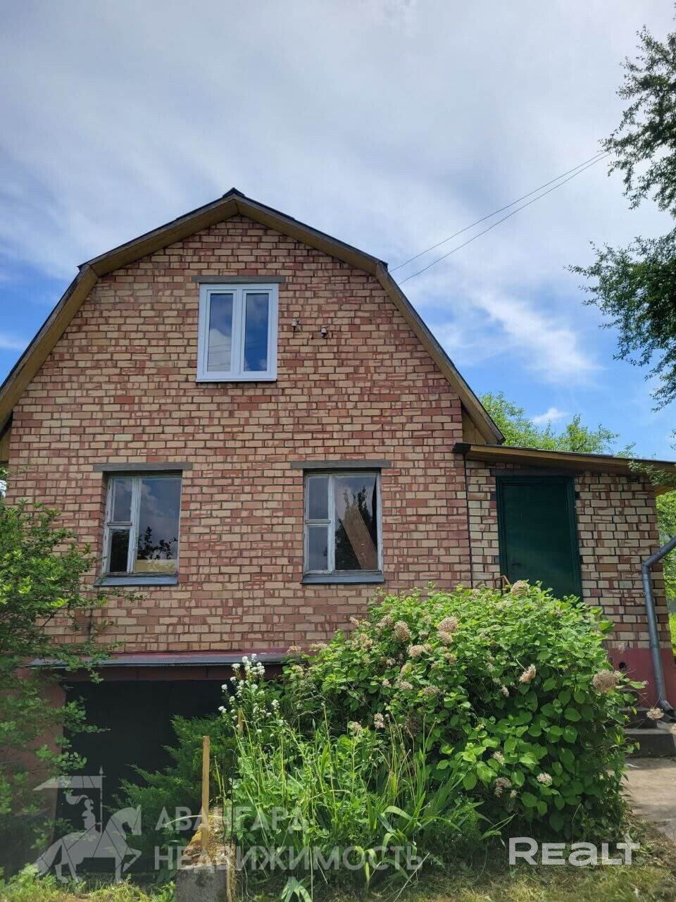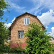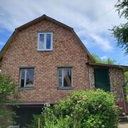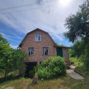 Двухэтажный деревянный дом обложенный кирпичом. Первый этаж – сруб, второй этаж жилая мансарда – сборно-щитовой, также обложен кирпичом. Фундамент дома из блоков ФБС. Перекрытия первого этажа железобетонные, второго - деревянные балки. Крыша накрыта шифером. На втором этаже установлены пластиковые стеклопакеты, что дает дому дополнительную тепло и звуко изоляцию. Внутри пол и стены – деревянная доска. Отопление печное, электричество заведено в дом, вода сезонная, санузел на улице. Общая площадь дома 79.4 м2, пространство первого этажа позволяет организовать кухню, гостиную или спальную комнату, также имеется коридор. В доме на цокольном этаже расположен вместительный гараж с бетонным погребом, чисто и сухо.