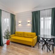 Полное оснащение: холодильник Indesit, варочная панель Exiteq, стирально-сушильная машина Electrolux и бойлер на 80 литров - все необходимое для комфортной жизни уже на месте! Бойлер и полотенцесушитель оборудованы умной розеткой, что позволяет управлять ими удаленно и экономить электроэнергию.