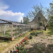 - Участок площадью 10 соток благоустроен: на нём расположены два небольших сарая для инвентаря и теплица, а также много красивых цветов. Соседей рядом нет, что создаёт ощущение уединённости. Подъезд к участку засыпан щебёнкой, что обеспечивает лёгкий доступ в любую погоду.