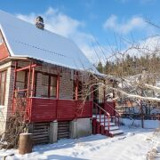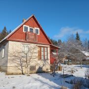Дачный домик площадью 53,5 кв.м., двухэтажный. На первом этаже две жилые комнаты и кухня. Печки в каждой комнате. Лестница на второй этаж с удобным углом наклона. На мансардном этаже есть небольшой балкончик.