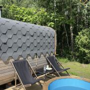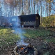 В живописном месте, в окружении леса, продается дача: 2 смежных участка (22,5 сотки), садовый домик-бочка (6*2,4м), баня-бочка (6*2,4м) с купелью и хозпостройка.