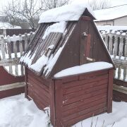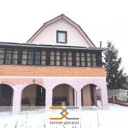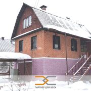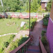 На участке в 6 соток расположился просторный 2-х уровневый садовый домик, бревенчатый, обложенный кирпичом.