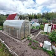Площадь участка 4,88 соток. На участке располагаются: непосредственно сам дом, гостевой домик с баней (сауна, душ, комната отдыха), санузел, теплица и др.