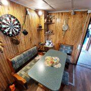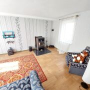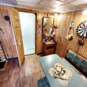Имеется все необходимое для проживания, мебель и техника. В частности: стиральная и посудомоечная машины, телевизор, спальные места, места для хранения вещей. Много инструментов и садового инвентаря. Вода проведена в дом. Печное отопление. Благоустроенный туалет как в самом доме так и на участке.