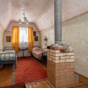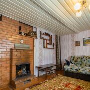 На первом этаже находится просторная веранда, где можно наслаждаться утренним кофе, любуясь природой. Внутри дома расположены гостиная с камином и печью, которые создают теплую атмосферу в холодные вечера, и спальня. Здесь есть всё необходимое для комфортного проживания.