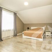 -Санузел облицован плиткой, установлена душевая кабина. В доме пластиковые стеклопакеты с отличной теплоизоляцией. Благодаря спокойной цветовой гамме и продуманным материалам дом воспринимается светлым, тёплым и просторным.