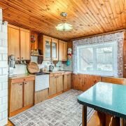 -Сердце дома - большая светлая кухня, в которую проведена вода. Там же стоит добротная кирпичная печь-плита, создающая атмосферу настоящего деревенского уюта и обеспечивающая тепло в любое время года. Вода заведена также и в баню, а на участке есть собственная скважина.