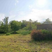 Земельный участок площадью 5 соток (0,0507га) в частной собственности, огорожен сеткой рабицей, перед домиком сделаны ворота для въезда автомобиля и калитка. Хозблок из дерева 3*2.
