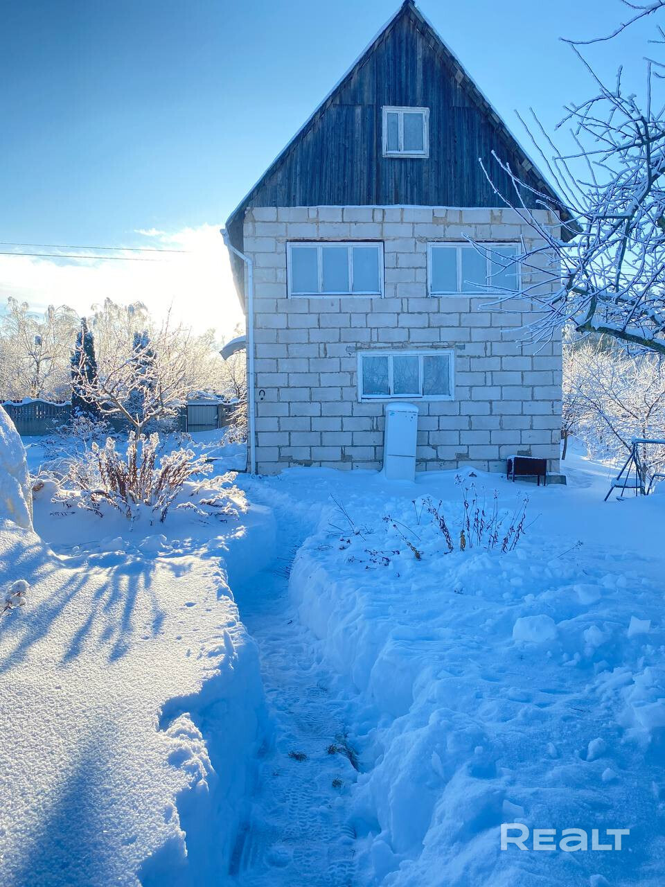Дом общей площадью 75 кв. м, построен из газосиликатных блоков, крыша из шифера.