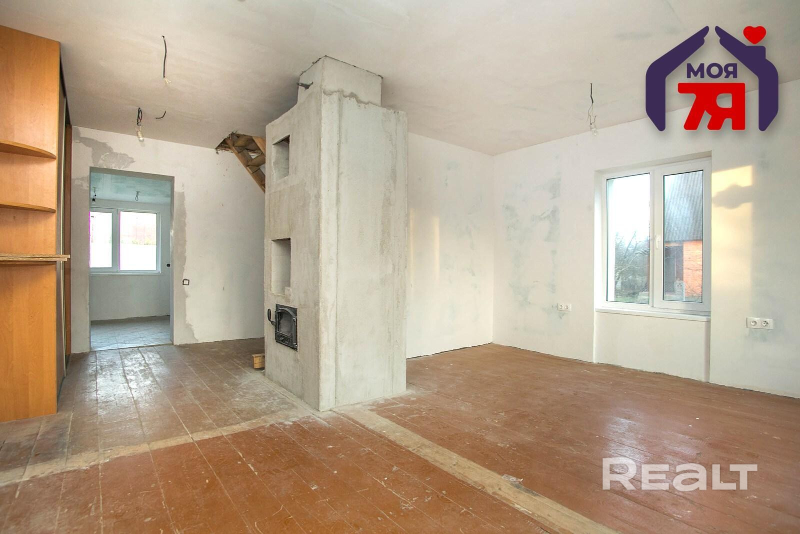 - Стены дома подготовлены для дальнейшей отделки, которую можно выполнить по своему усмотрению. Установлены стеклопакеты, которые обеспечивают хорошую теплоизоляцию и защиту от внешних шумов.
