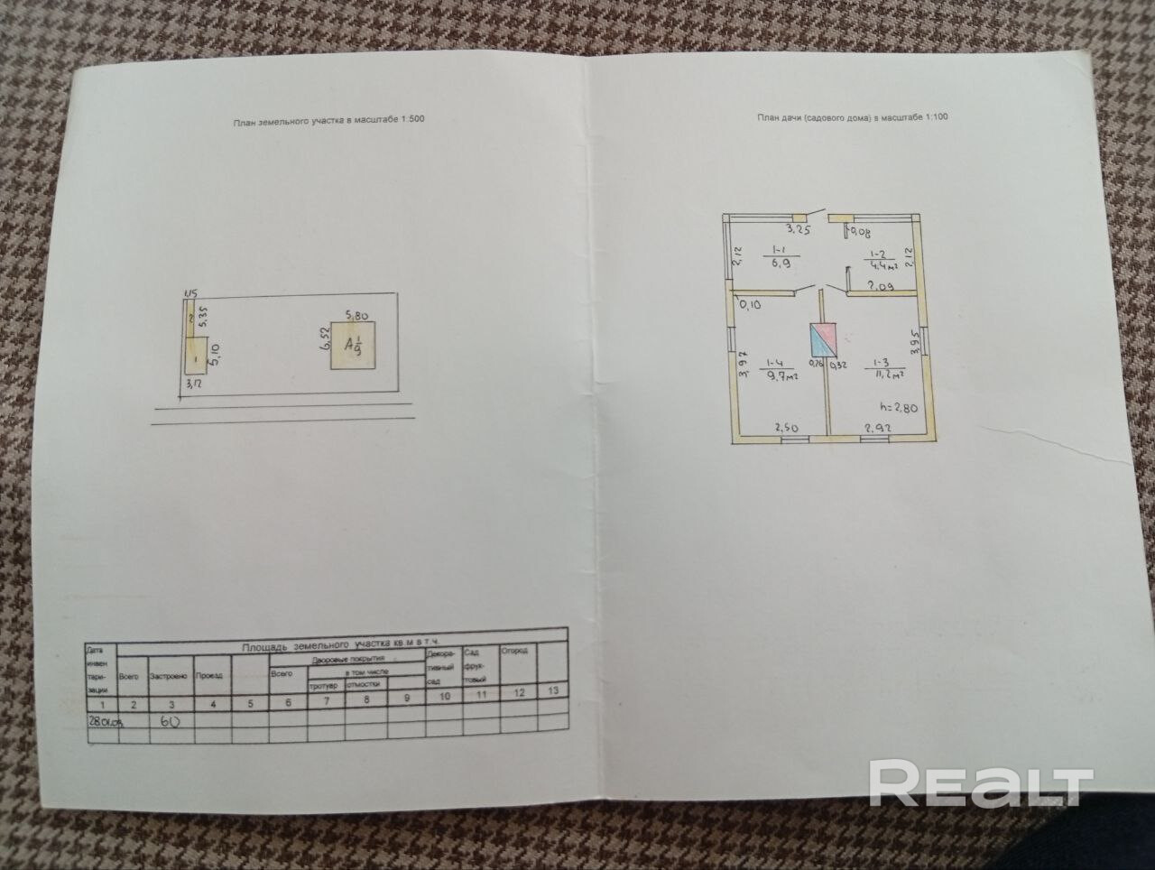 - Площадь участка