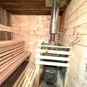 Отдельностоящая баня на территории участка, с новой парилкой и купелью. И большой зоной отдыха и уютной террасой с мангалом, прекрасно будет для использования в загородном доме.
