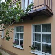 Жилой дом представляет собой одноэтажный деревянный  дом состоящий из одной комнаты площадью 18,7 м.кв и к нему пристроена новая пристройки из газосиликатных блоков, в которой прекрасно  разместились просторная  прихожая, топочная, кухня-столовая 20,5 м.кв.,сан.узел и ванная комната. Обустроен мансардный этаж на одну жилую комнату 28,3 м.кв. с большими окнами и балконом.  В доме предусмотрено печное отопление и паровое отопление от котла на твердом топливе. Хорошие добротные межкомнатные двери и стеклянная входная  дверь. Красивое  крыльцо. Снаружи весь дом утеплен и аккуратно покрашен. Есть хозпостройки. Из коммуникаций -  вода центральная, канализация местная, электричество.