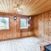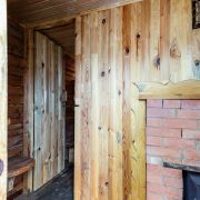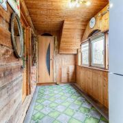 -Ремонт в этом доме выполнен в теплых, натуральных тонах с преобладанием древесины, что создает атмосферу уюта и настоящего загородного уединения. Стены и потолки обшиты вагонкой, придающей помещению эстетичный и аккуратный вид.