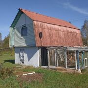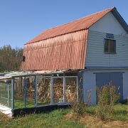 Дом 2 уровня, площадью 54кв.м.. Первый уровень - гараж, кухня; второй уровень -  жилая мансарда. Хорошие соседи.