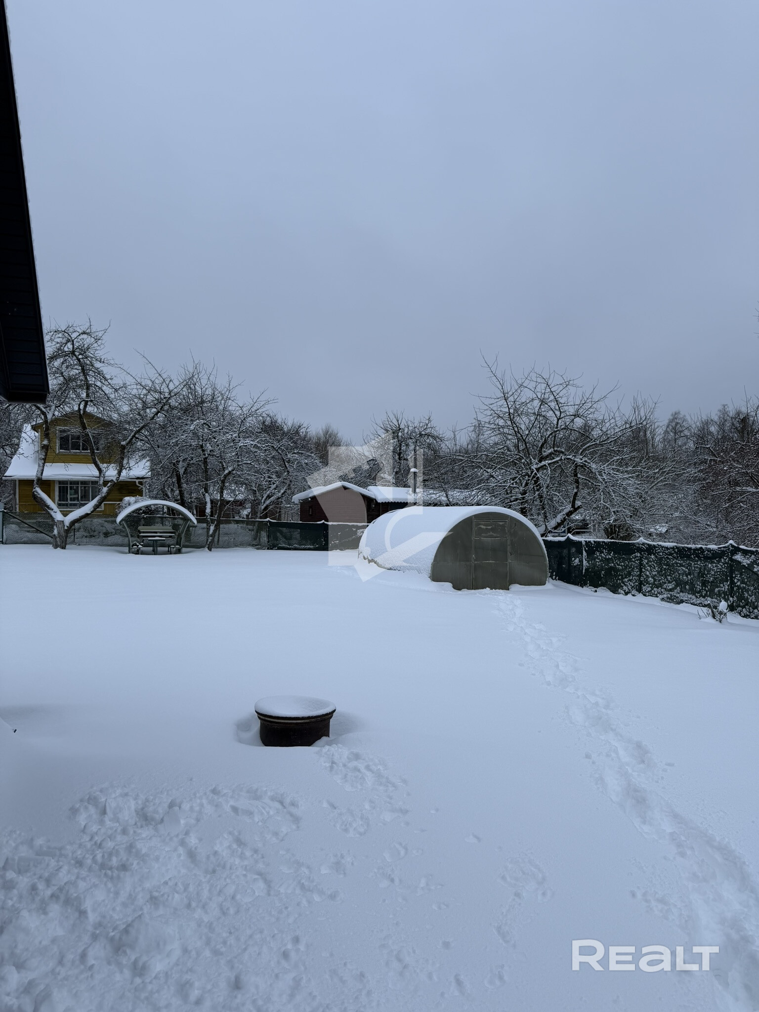 На участке располагается большая теплица из поликарбоната, беседка, большой бассейн, большой хоз.блок с просторной терассой, постирочной(стиральная машина имеется и подключена), Баня с печью HARVIA, летняя кухня с подведенной горячей и холодной водой.