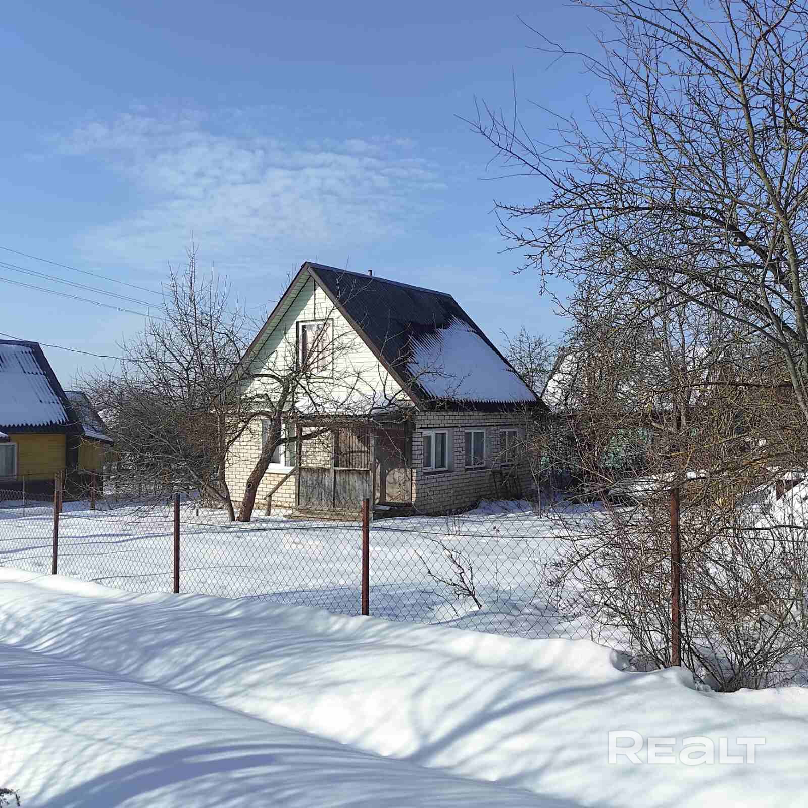 С/т Колос (дачи БГУ). Аккуратный, уютный, тёплый домик с двумя жилыми комнатами на 1-м этаже и одной на 2-м. На первом этаже комнаты отапливаются одной печкой. Есть хоз постройки - сарайчик, кладовка, туалет. На участке взрослый плодоносящий сад - пять яблонь хороши сортов и сладкая груша. Есть малина, клубника, смородина, крыжовник, китайский лимонник, черемша, много цветов. Рядом приятные интеллигентные соседи.