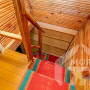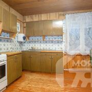 -Внутри дом отделан деревом, на кухне установлен функциональный гарнитур.