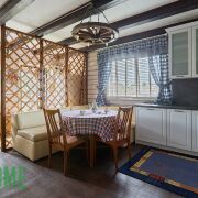 -На первом этаже расположена прихожая, большая гостиная комната, а также просторная кухня, которая оборудована всей необходимой мебелью и техникой. На кухне установлен бойлер, посудомоечная машина.