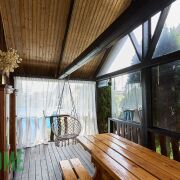 Отделка деревом подчеркивает особую атмосферу загородной жизни. В доме есть все необходимое, как для сезонного, так и круглогодичного проживания.