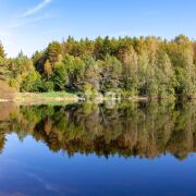 Прекрасный лес окружает деревню со всех сторон. В нем Вы сможете как совершать прогулки, устраивать пикники, так и собирать грибы и ягоды. Также недалеко от дома находится озеро, в котором можно будет искупаться во время знойного летнего дня.
