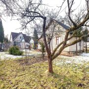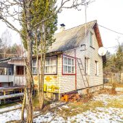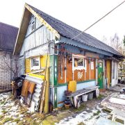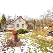 - Помимо основного дома на участке есть деревянный дом-баня, оснащённый бойлером и ванной, а также ниша для хранения садового инвентаря. Для особо ценных инструментов и оборудования предусмотрена полностью железная хозяйственная кладовая с навесом.