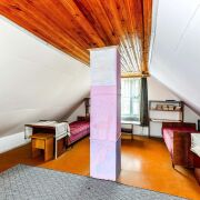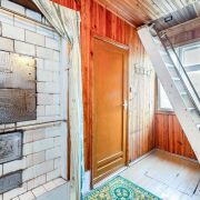 - На участке в 5 соток расположен капитальный двухуровневый дом площадью 70,4 м2. Внутри – удобная кухня, просторный холл с лестницей на второй этаж и три комнаты с высокими потолками. Дом очень тёплый благодаря специальной сибирской каркасно-модульной конструкции с утеплителем, обложенной кирпичом. По центру установлена качественная печь, отапливающая все помещения. В окна открывается живописный вид на вечнозелёный хвойный лес всего в 30 метрах. Здание стоит на крепком фундаменте и имеет отличный сухой бетонированный подвал для хранения заготовок.