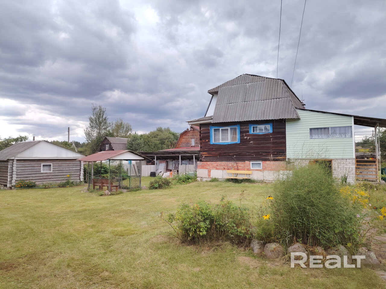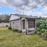 На участке находятся два жилых строения и баня. Первый дом — бревенчатый сруб 2001 года постройки, установленный на фундаменте 6х9 метров. Его общая площадь составляет 140 квадратов, из которых 80 — жилые. Под строением обустроен полноценный подвал из ФБС. На втором этаже, в углах кровли, выведены три окна. Отопление печное. Второй дом построен из газосиликатных блоков, его габариты — 7,6 на 4,8 метра. Печное отопление. Отдельно стоящая баня. Рядом река и лес