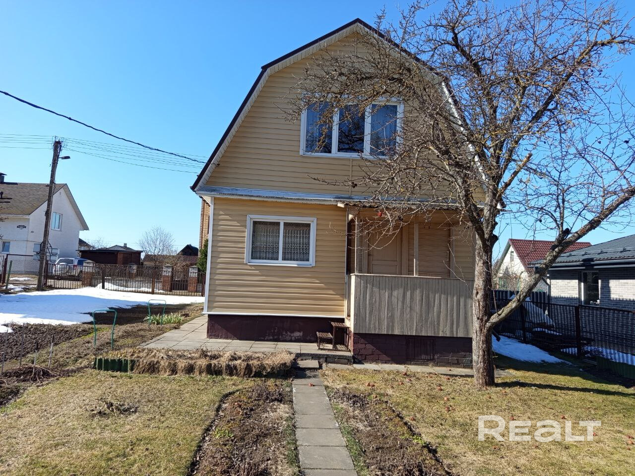Дача в 22км от Минска в с/т "Свитанок 2002". Деревянный дом 1995года постройки, обшит сайдингом, установлены стеклопакеты. Участок правильной формы находится на горке. Газ по улице. Отопление печное, вода сезонная. Есть сарай с погребом и баней, стеклянная теплица.