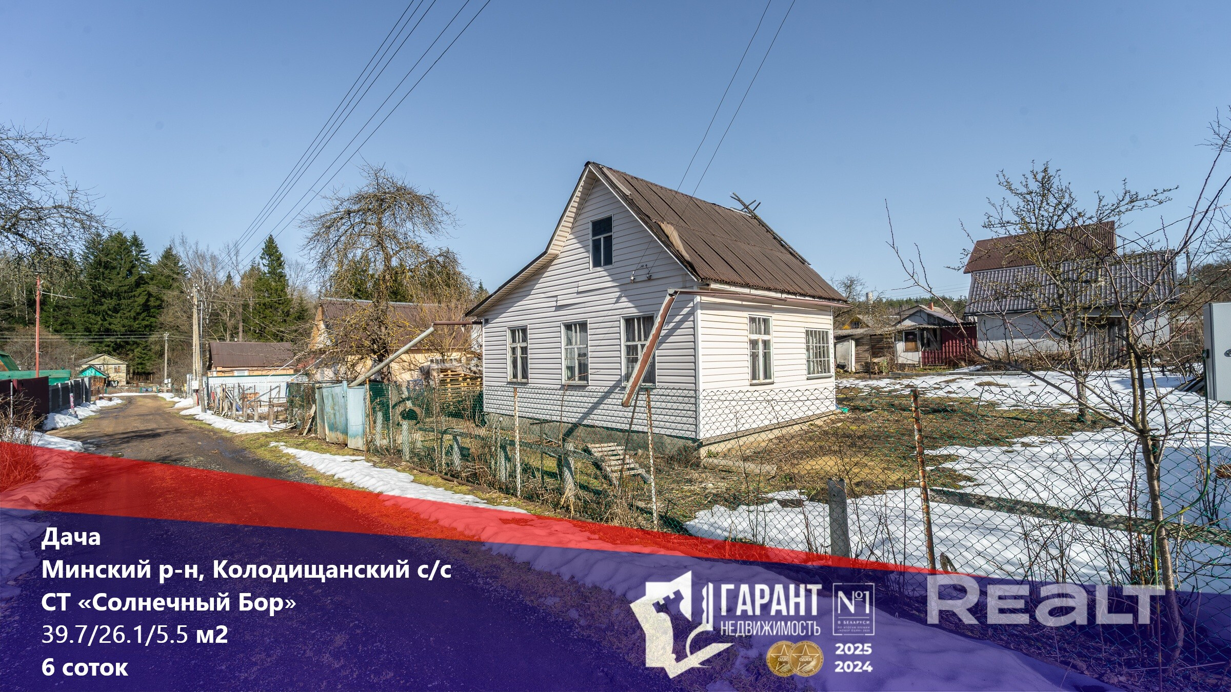 Бревенчатый дом с участком 6 соток в 10 км от МКАД. В доме веранда, 3 комнаты, печка и кухня. Вокруг чистый богатый лес. В шаговой доступности агрогородок Колодищи со всей необходимой инфраструктурой: транспорт, школы, детские сады, магазины и банки. Газ и центральное водоснабжение по улице.