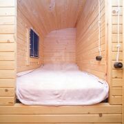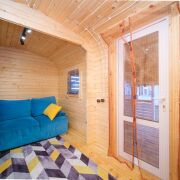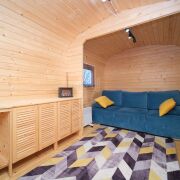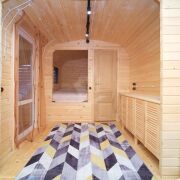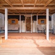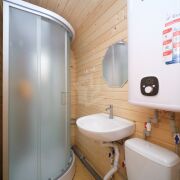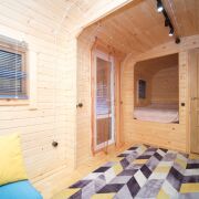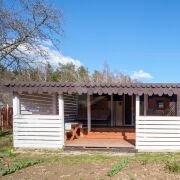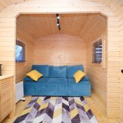 Первый домик (20 кв. м.) – это уютное пространство, продуманное до мелочей. Здесь вы найдете комфортное спальное место, уютную гостиную зону и собственный санузел. Из домика предусмотрен выход на просторную террасу, где так приятно проводить вечера в кругу близких или наслаждаться утренним кофе.