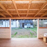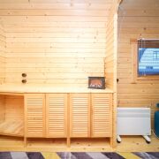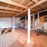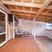 - Отделка: Все деревянные поверхности внутри и снаружи обработаны качественной защитной пропиткой и покрыты износостойким бесцветным матовым лаком или краской по дереву. Террасная доска также обработана немецким маслом и окрашена.