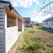 Второй домик (50 кв. м.) предлагает больше пространства и удобства. Он состоит из трех комнат (25кв. м., 15 кв. м. и 10 кв. м.), которые, хотя и являются проходными, обеспечивают отличное зонирование. Вход в дом возможен с двух сторон, что добавляет удобства. Дом утеплен и можно в нем отдыхать в холодное время.