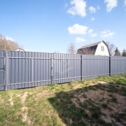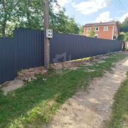 - Ограждение: Участок надежно огорожен по всему периметру. Со стороны дороги установлен забор с металл профиля высотой 1.7 метра с удобными калиткой и воротами.