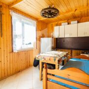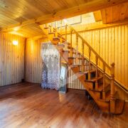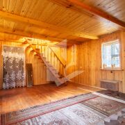 Дача представляет собой деревянный дом, 2 этажа. На первом этаже расположены кухня 12 кв.м и большая жилая комната 28 кв.м. Лестница на второй этаж деревянная, удобная. На втором этаже расположена жилая комната 15 кв.м.