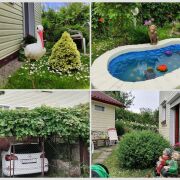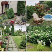 Участок: разбит на два - 0.0443 га (основной) и 0.0393 га (под огород), оба в частной собственности, облагорожены, почва - плодородная. Посажено много хвойных, плодово-ягодных деревьев и кустарников. Есть цветущие декоративные растения в частности розы, пионы, гортензия.