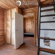 Двухэтажный дом – каркасно-засыпной, общая площадь 69,8 кв.м. На первом этаже три комнаты (5,6 + 9,5 + 9,9 кв.м.), кухня (9,1 кв.м.), веранда (3,9 кв.м.). Мансарда – две комнаты (10,0 + 9,7 кв.м.).Подвал (7,2 + 4,9 кв.м.). Окна и двери деревянные. Отопление печное. Электричество (новый счетчик, вынесен на столб). Вода сезонная.