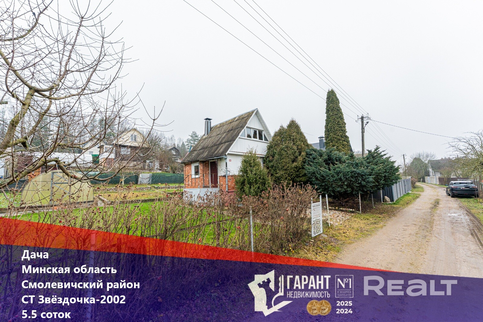 Дом аккуратный и светлый, идеально подойдёт для отдыха по выходным или сезонного проживания. На участке — ровный, красивый газон, радующий глаз и не требующий сложного ухода. Есть теплица для любителей свежих овощей и зелени, а также гараж-мастерская — отличное пространство для хобби, хранения инструментов или автомобиля.