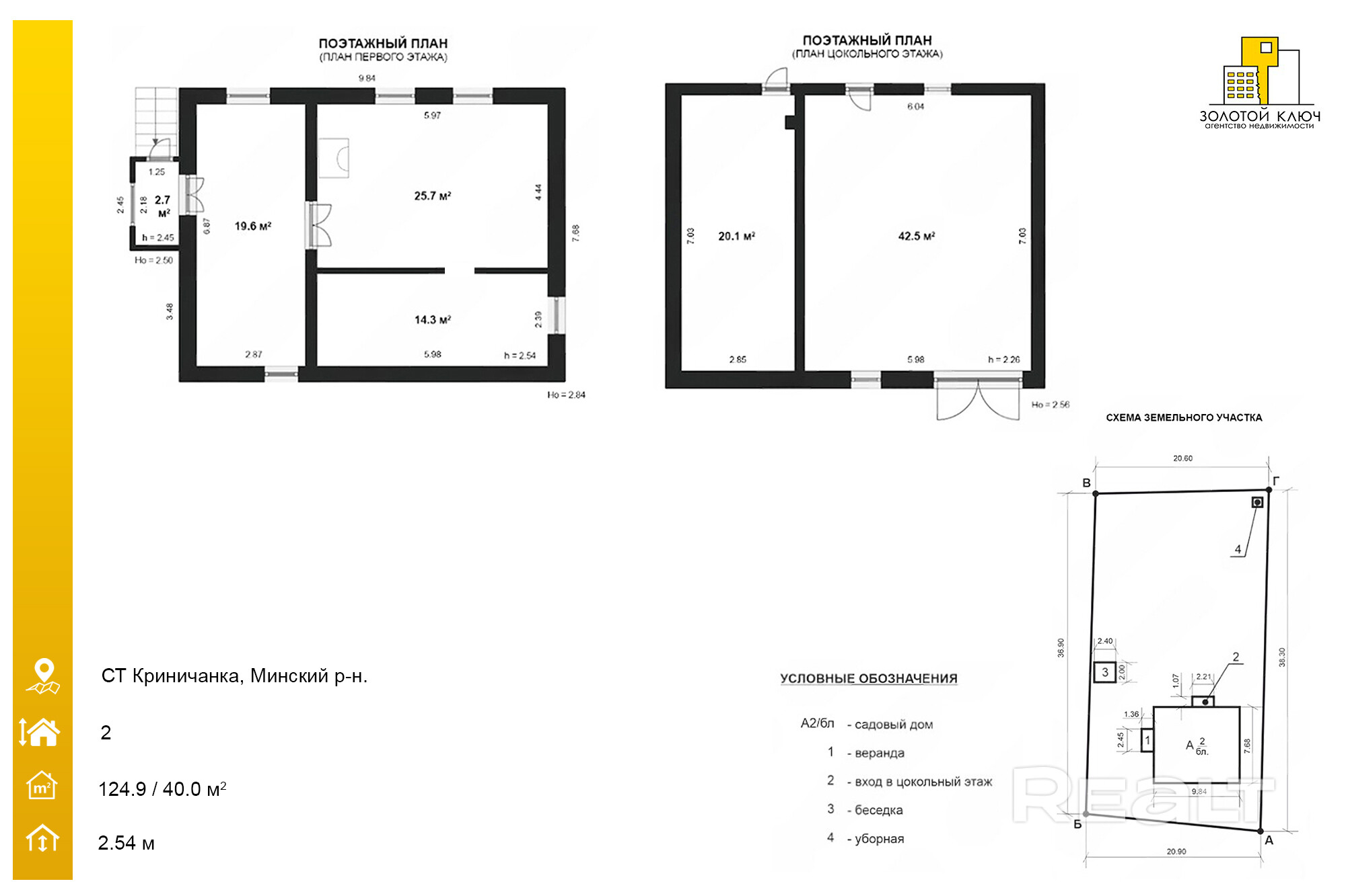 - Площадь дома: 124.9 / 40 / 19.6 кв.м.