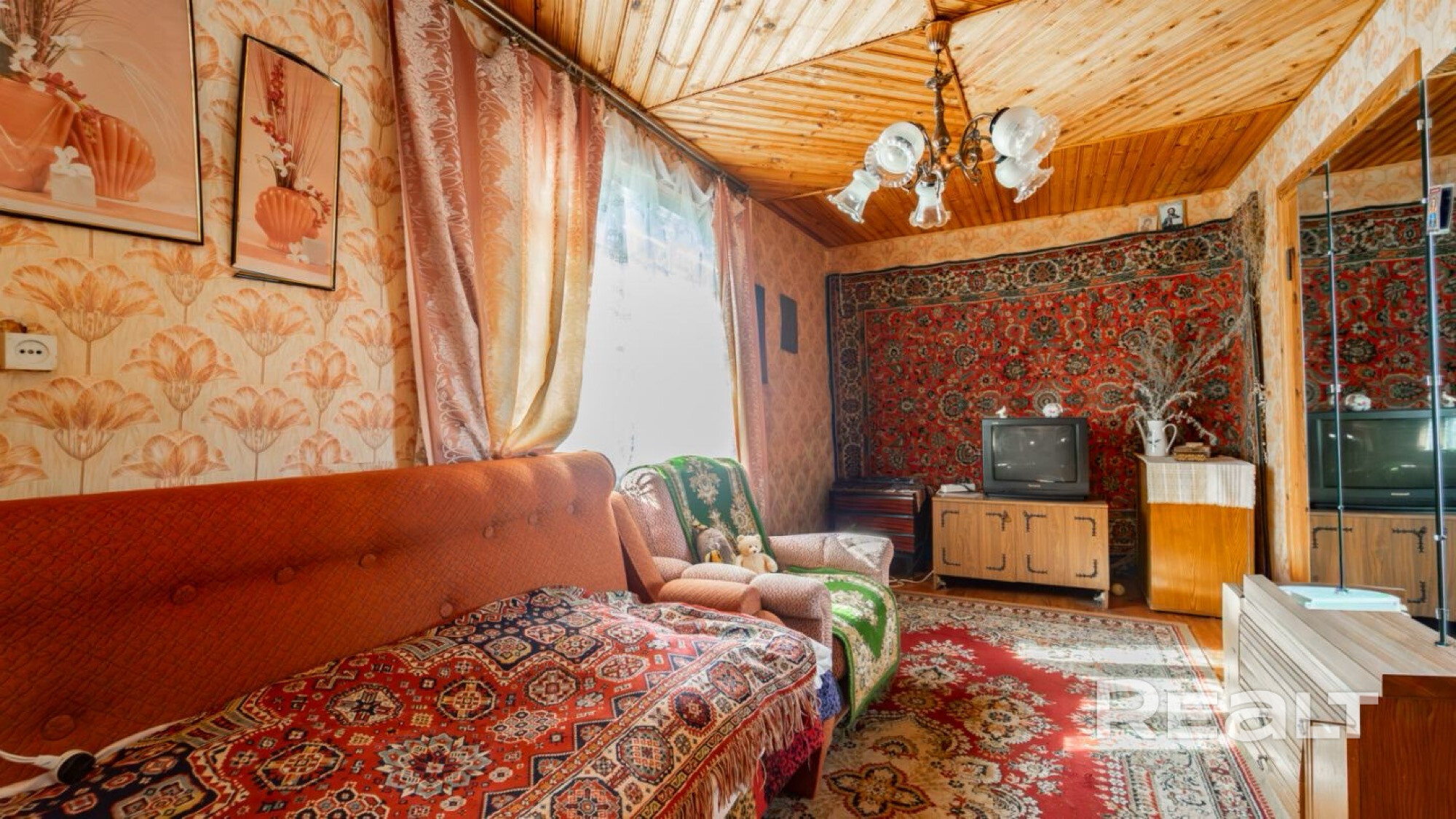 Дом бревенчатый.На первом этаже 5 комнат: кухня, большая гостиная и три комнаты. На втором этаже 2 комнаты. Лестница на второй этаж с удобным углом наклона. В доме много мест для хранения. В цокольном этаже просторный гараж с ямой для осмотра машины. А в соседнем помещении большая комната, оборудован раздельный санузел с душевой кабиной и бойлером. Имеется канализация.Участок ровный. Дополнительно есть участок 4 сотки рядом и колодец. Вода подведена в подвал и на кухню. Асфальтированная дорога.