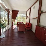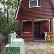 - Дом с крытой террасой и балконом. Баня и бассейн размером 3.5 × 4.5 (кафель) вблизи соснового леса, реки и только двух соседей рядышком. Ровный, сухой участок со своей скважиной и центральным водопроводом, разведенная вода по дому и бане, устроена автономная канализация. Две душевые кабины с проточными водонагревателями. Возможность отопления за счет электрических конвекторов и печи. Три жилых комнаты;