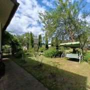 - Просторный участок с ухоженным газоном, цветниками, декоративными и ягодными кустарниками, плодовыми деревьями. Качели. Теплица на бетонном фундаменте. Ограждение по всему периметру и дополнительные ворота;