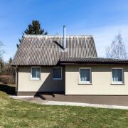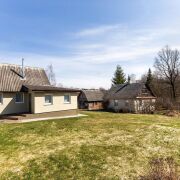 - Кухня-гостиная (15,5 м2) имеет Г-образную форму и функционально отделена от жилой части дома. Можно организовать кухонную зону и отдельно зону отдыха / приема гостей. Введены вода и канализация, есть бойлер. 5 окон, металлическая дверь в жилой блок. Пол – керамогранит, потолки – вагонка. Есть погреб, облицованный плиткой.