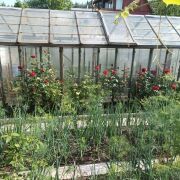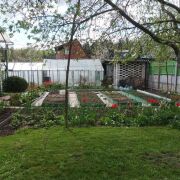 - Земельный участок 5 соток в частной собственности, имеет гос. регистрацию. На участке имеются три застекленные теплицы для выращивания овощей, компактное строение для хранения дров и садового инвентаря. Есть плодоносящий сад, ухоженный огород и качели для отдыха.